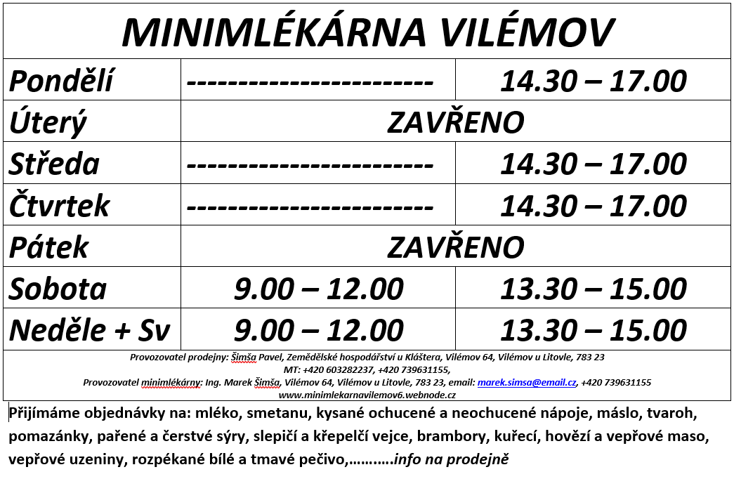 Věříme, že změna bude vítaná. Objednané mléčné výrobky a rozpékané pečivo je možné si vyzvednout po dohodě i v jiném čase. ( SMS - +420 603 282 237 )